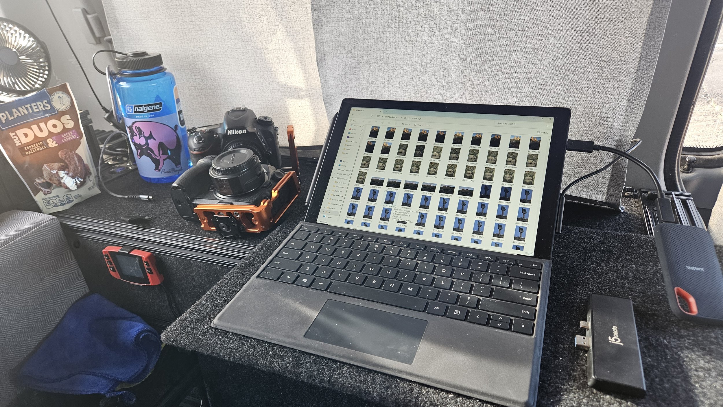 Eventually, the task of getting organized could no longer wait. I got out my three image cameras, my three video cameras, and my drone. I hadn’t used all of these as of yet on this trip, but I figured I’d take the opportunity to get their batteries charged, lenses cleaned, and memory emptied so that if I did end up using any of them, they’d be ready. #RainyDayTasks