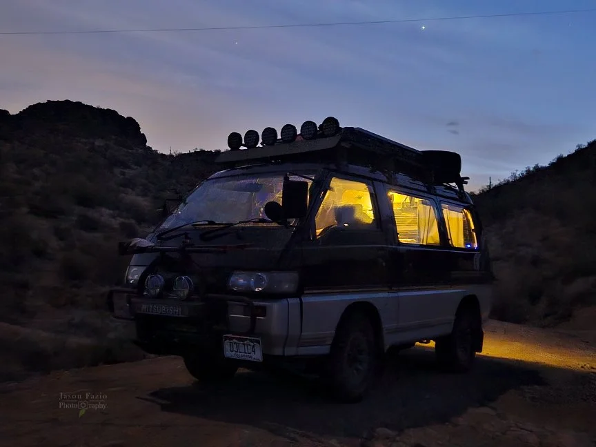 I didn’t bring a headlamp! I s’pose in my haste, and merely being concerned with bare minimums, I forgot to pack one. I considered having KRL fly one to me, but he’d already ventured off down the road explorin’ all there was to see. An air delivery would have been epic to write about!