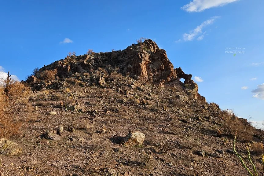 We hit the road. Our destination was a sketchy pullout on the side of the road. Well, it at least looked like a pull-out via the research I did. I’d mapped out where I thought an arch was in the Superstitions. From there, I mapped out the closest spot that I felt I could pull over and park. Between the two would be a hike through the Sonoran Desert.